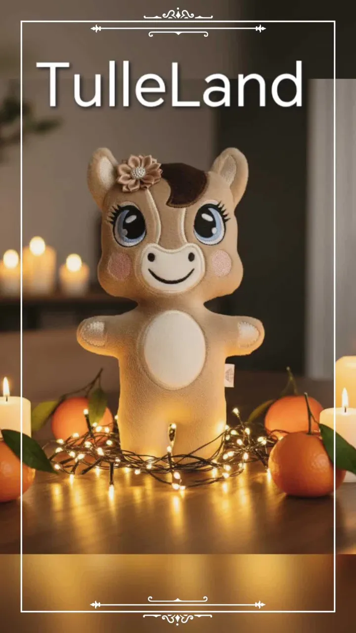 Beige horse girl, handmade plush toy, stuffed wool horse doll, soft rag doll