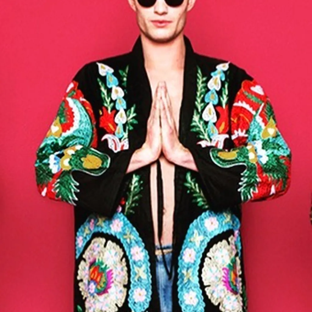 Unique Gold Silk lace embroidery boho kimono coat by order
