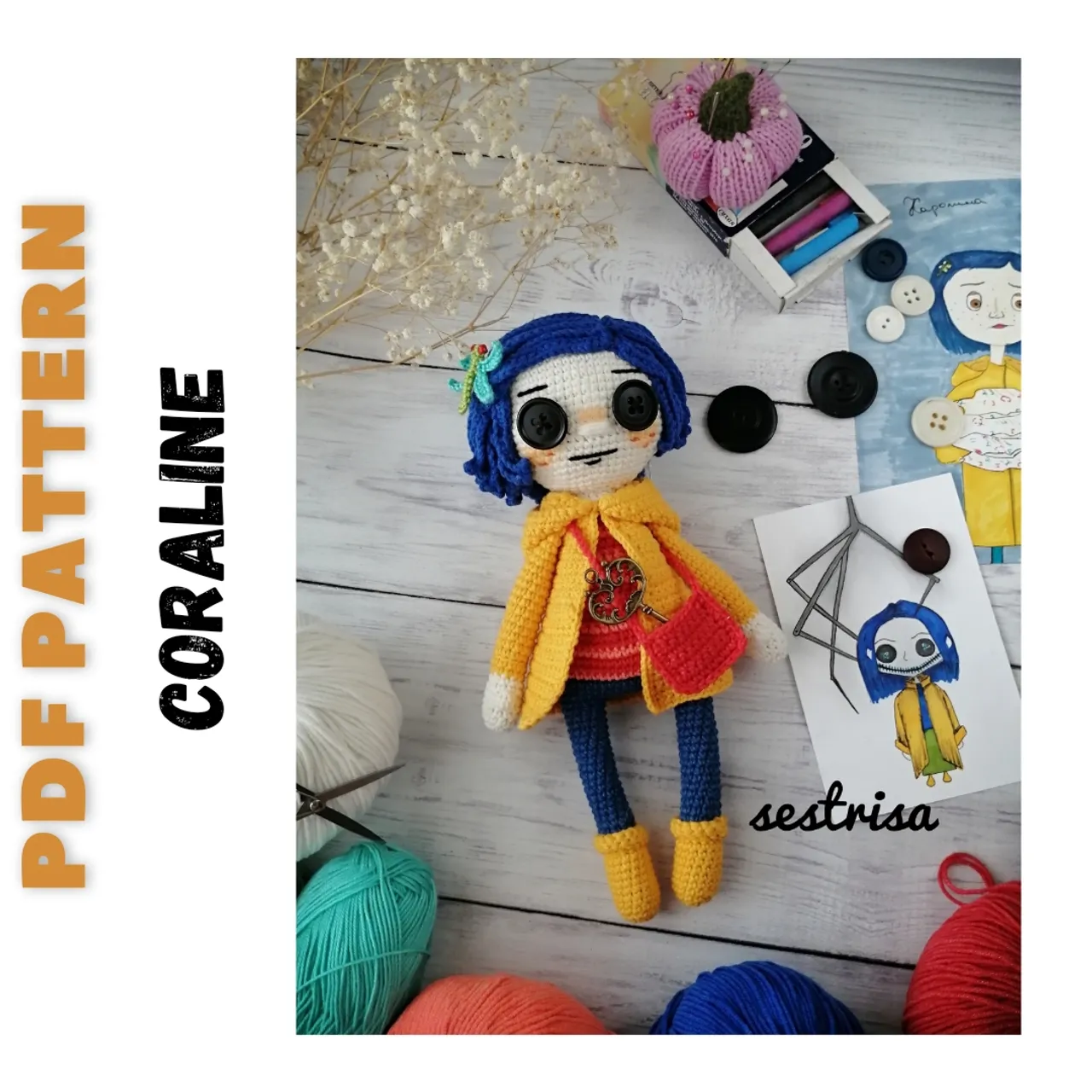 COraline doll PDF crochet pattern